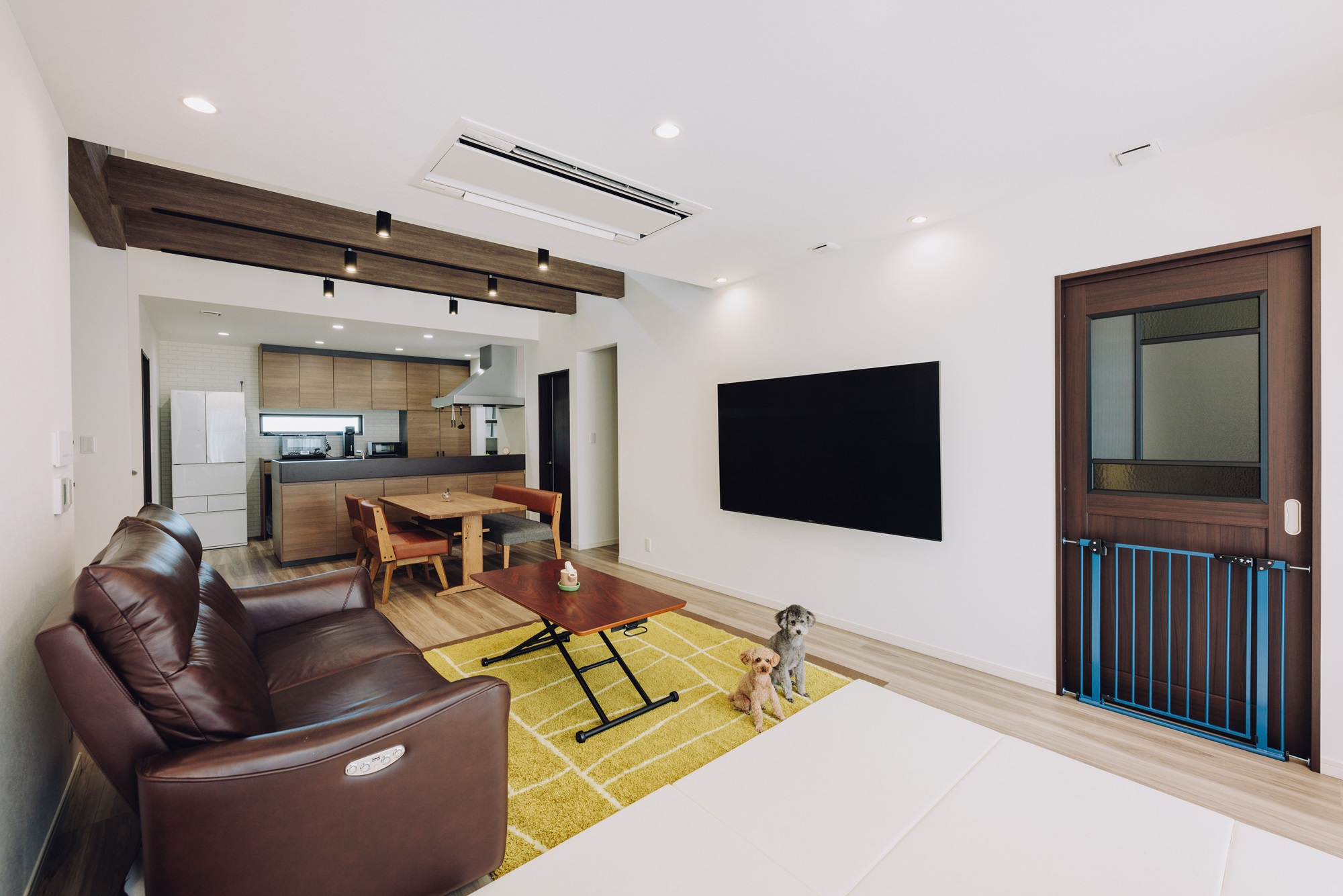お気に入りはリビングです。リビングとウッドデッキを繋げることで広々と部屋を使えて子供達も走り回れます。また、浴室乾燥機とランドリルームを設けることで、天気に左右されることなく洗濯物を干せるところも気に入ってます。こだわりはスキップフロアの下のデッドスペースに愛犬部屋を設けたことです。