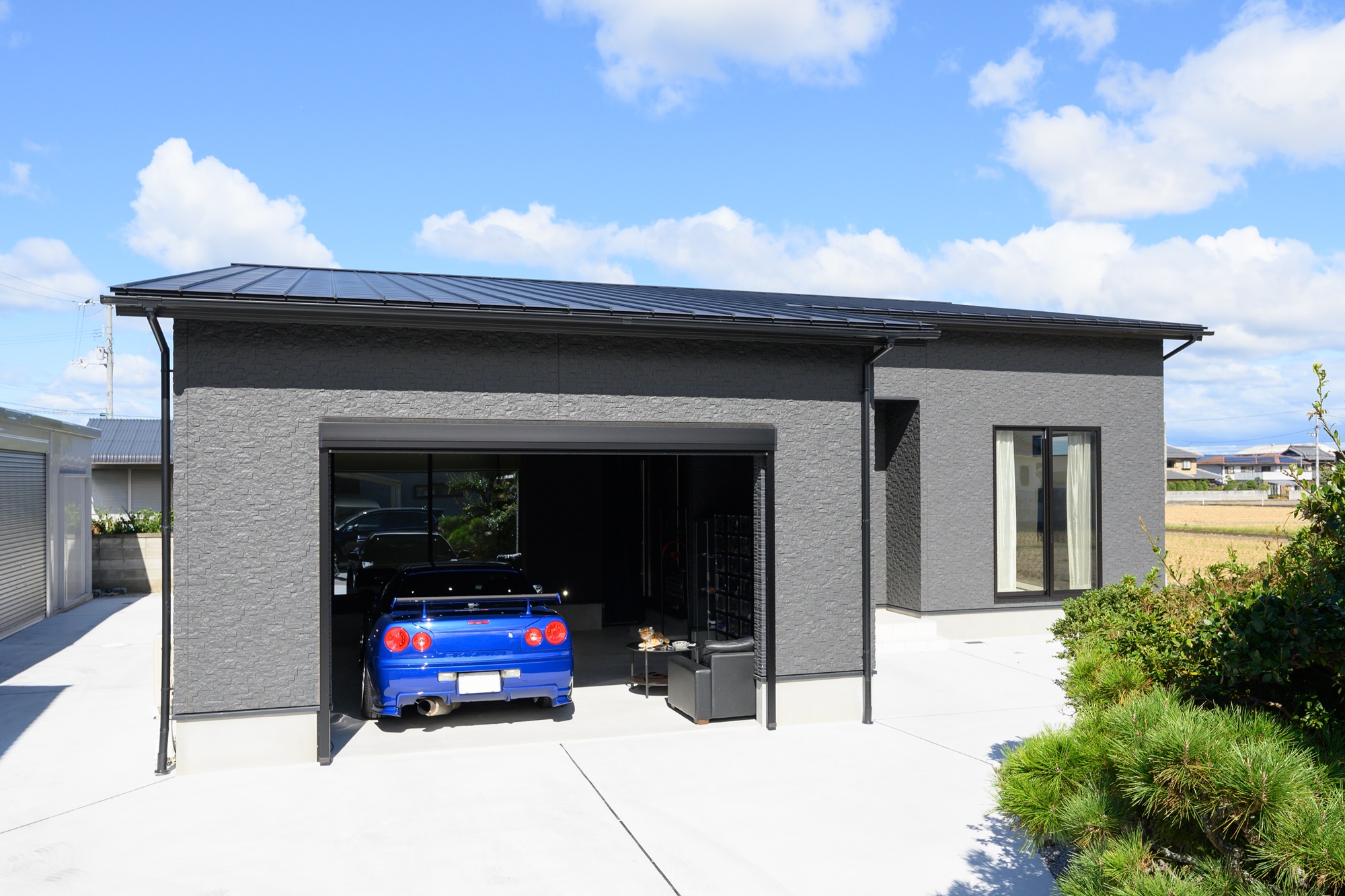 愛車を雨風から守れたり盗難の心配も限りなく0に近く、夏場でも冬場でも快適に作業できる環境が家の中にある事に満足しています。 リビングなどの家族との空間や収納も十分な広さがあるため、ストレスなく生活ができています。
