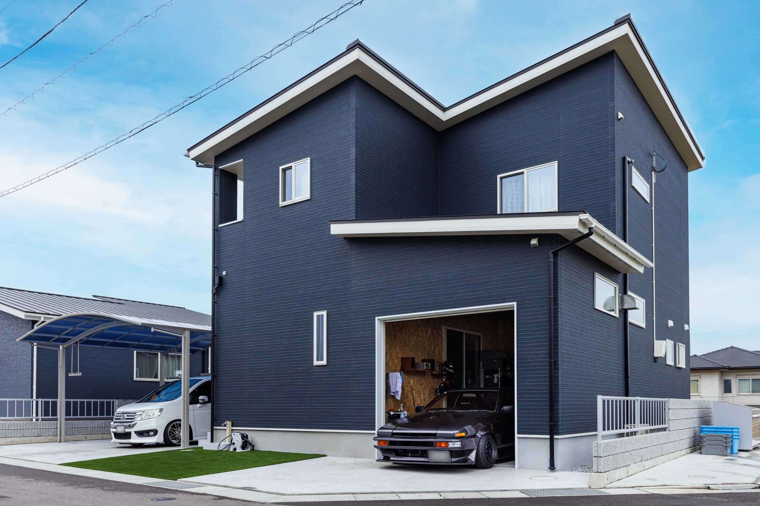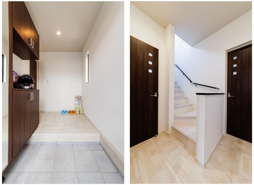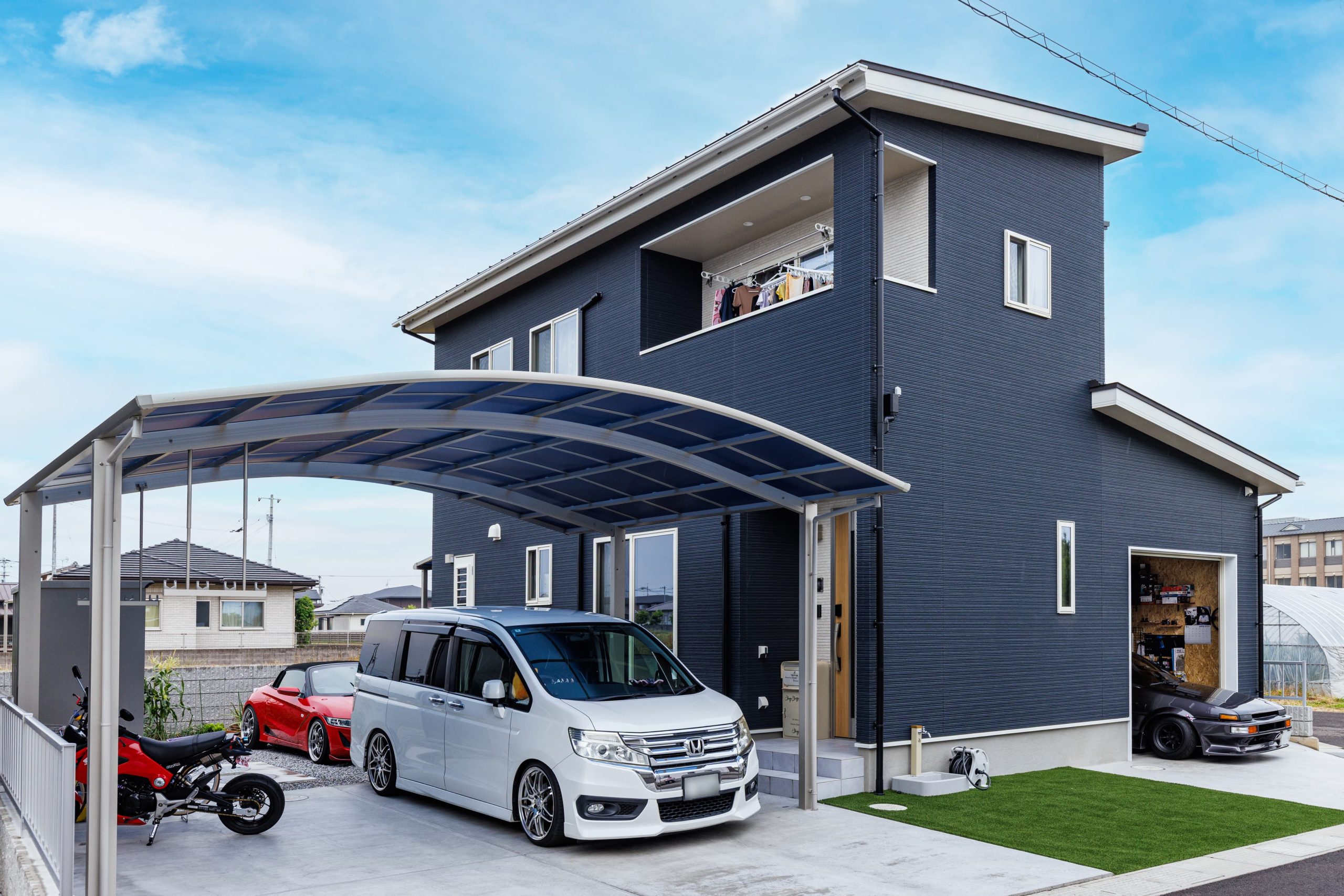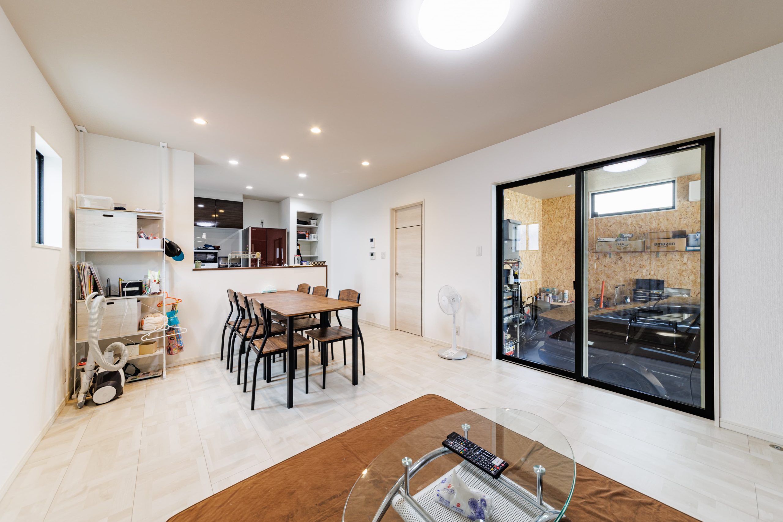 木目調が映えるアイランドキッチンのある洗練されたお家
