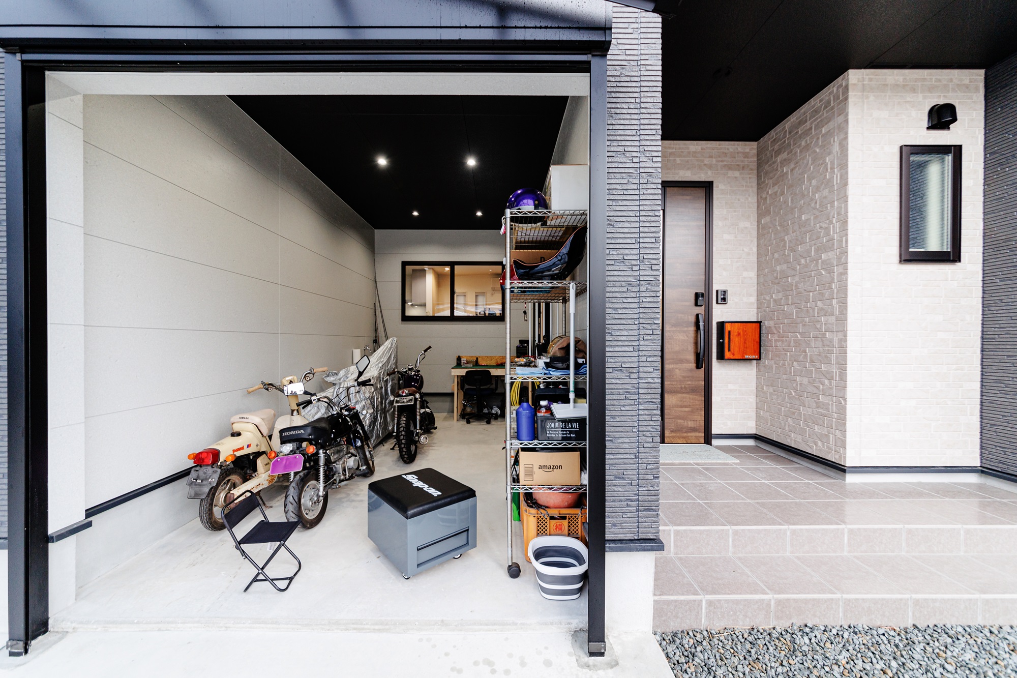趣味のバイクを格納できるガレージがあるお家